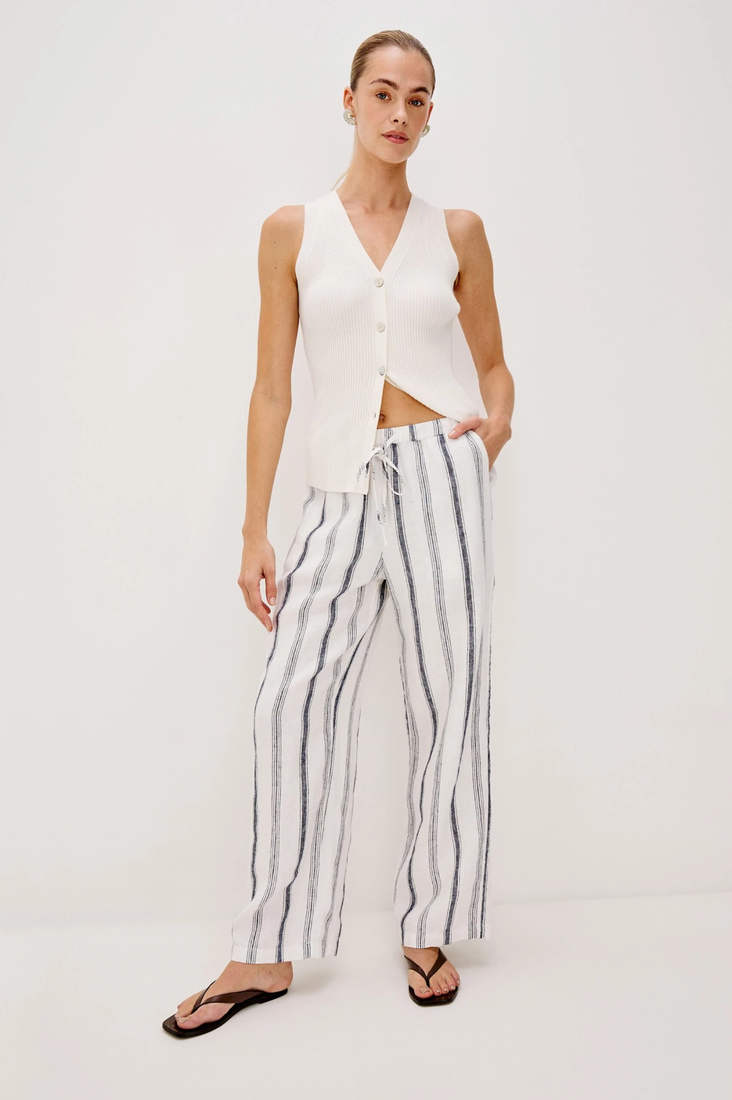 The Emmie is an essential pant that emphasizes comfort. This wide-leg, high-rise style is crafted from a luxe cotton poplin fabrication and features an adjustable drawstring for a customized fit.